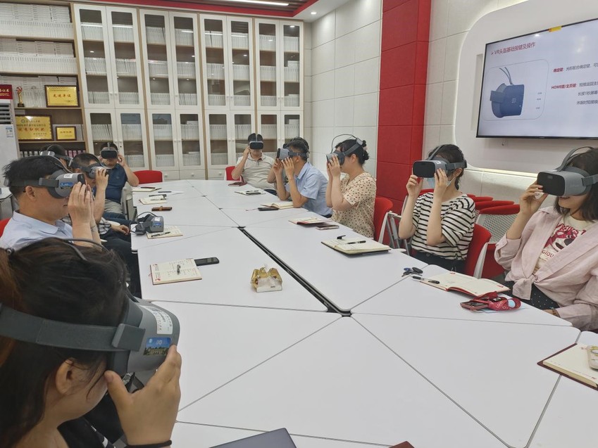 为进一步丰富主题教育形式,激发广大党员干部学习兴趣,提升学习成效,6月1日,机关党委第五党支部全体党员走进马克思主义学院思政课教学实践中心VR课堂体验沉浸式主题教育学习。
