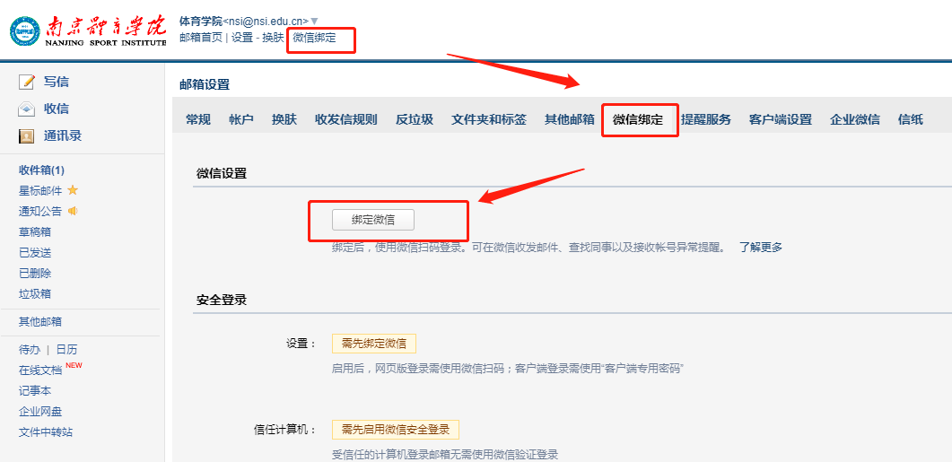绑定微信后,您将可以使用企业邮箱“微信提醒”功能。