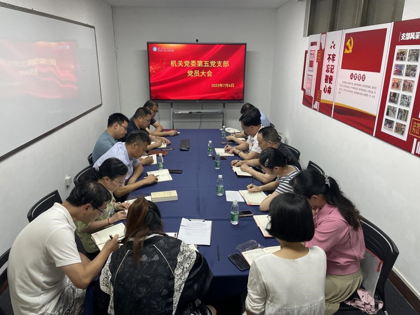 7月6日上午,机关党委第五党支部在图书馆117室召开支部党员大会,会议由支部书记叶强主持,支部全体党员参加会议。