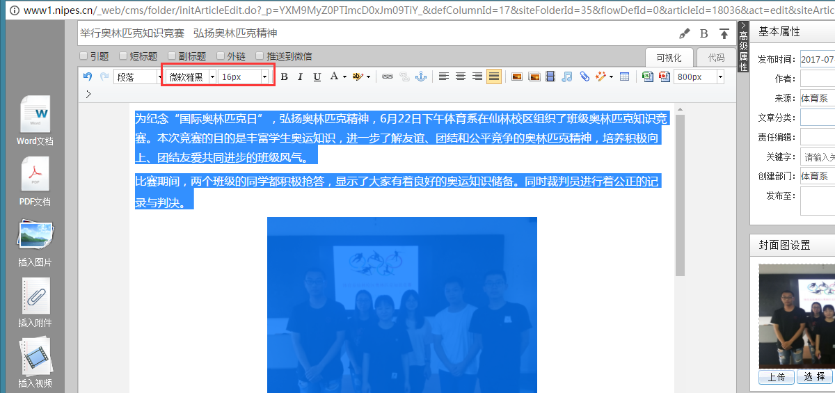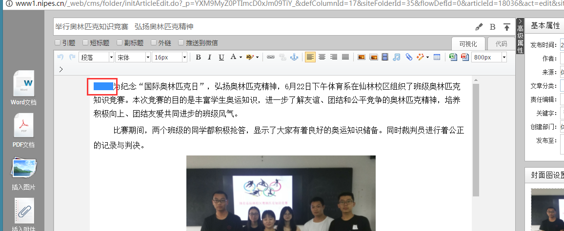(这是由于word文档在不同电脑上均有格式编辑差异,必须把原word文档中不稳定的格式去除,在网站群后台编辑器中重新设置,否则会出现编辑器与实际发布的呈现不一致,影响发布效果):