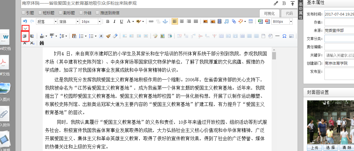 为了便于我院网站站群编辑老师的操作,现列举几项常用后台编辑操作步骤,帮助各位老师方便快捷地调整文档格式:
