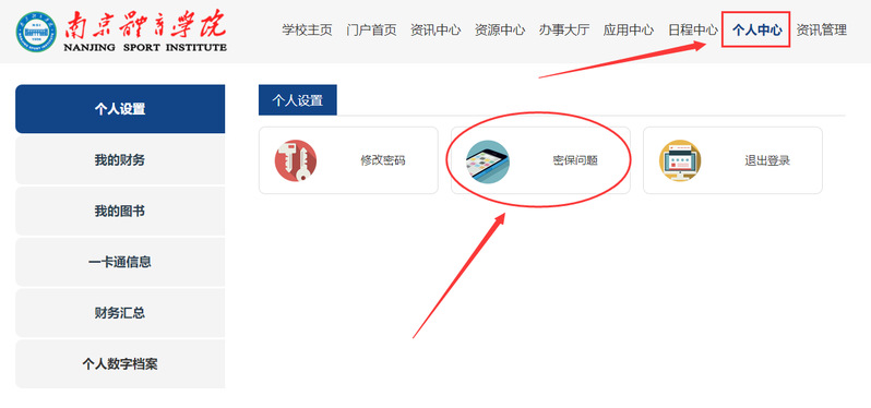 登录信息门户https://my.nsi.edu.cn/,点击“个人中心”的“密保问题”进行修改。