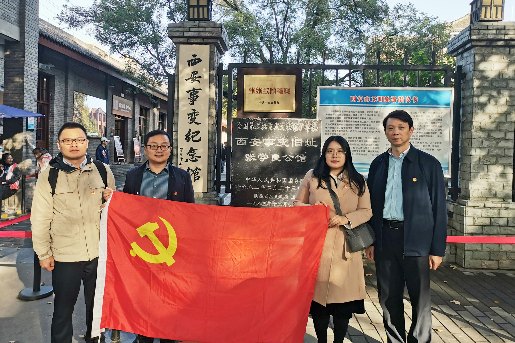 党委宣传部、党委统战部党小组在西安事变纪念馆前合影