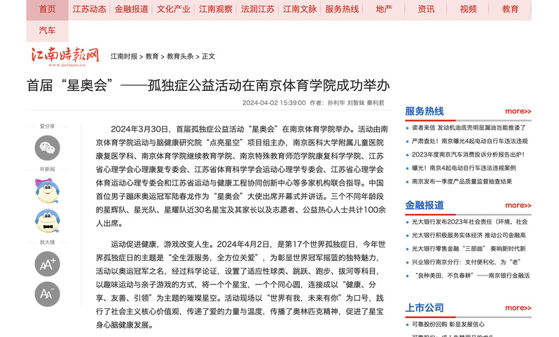 【江南时报网】首届“星奥会”——孤独症公益活动在艾弗森贝博ballbet官网成功举办