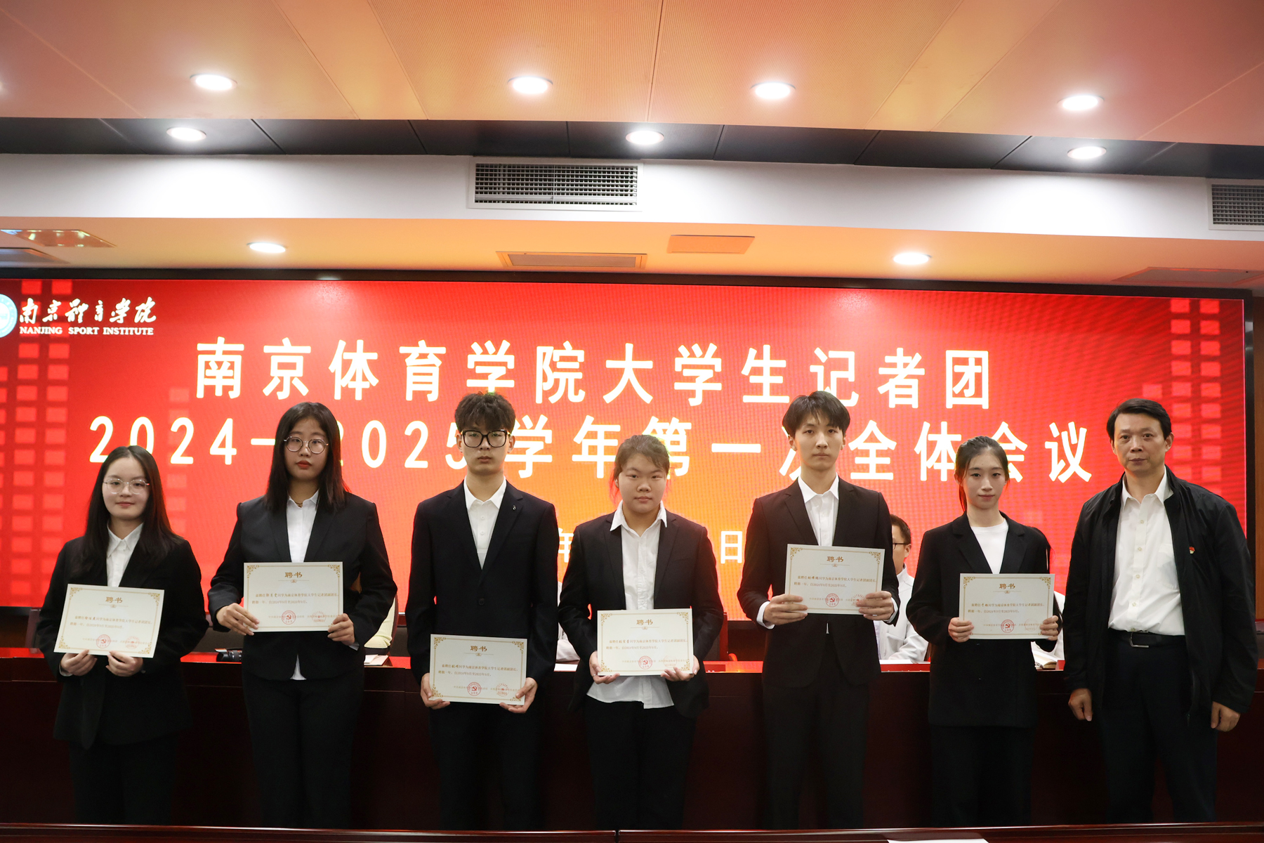 郎君儒宣读了《中共艾弗森贝博ballbet官网委员会宣传部、共青团艾弗森贝博ballbet官网委员会关于2024-2025学年大学生记者团主席团的聘任决定》。徐佳燕担任记者团团长(第9任),郭月雯、张硕、张宣萱、胡曜鹏、于璐担任记者团副团长。