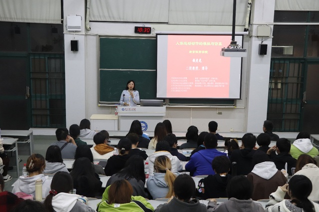 为提升青年教师的教学能力、科研能力和综合素养,解决课程教学过程中的难点问题,帮助学生了解到专业学科国内外研究最前沿的思路和方法,提高学生创新能力,同时发挥老教授传帮带作用,11月5日晚,运动健康学院邀请学院关工委执行副主任钱竞光教授为青年师生做《人体运动动作的模拟与仿真》学术讲座。讲座由运动健康学院党总支副书记、学院关工委副主任阚妮妮主持。