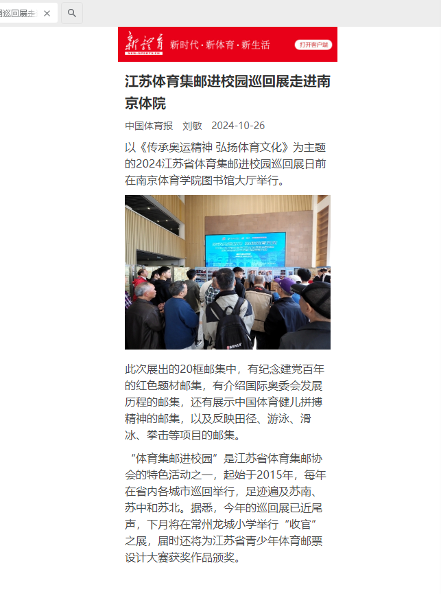 【中国体育报】江苏体育集邮进校园巡回展走进南京体院
