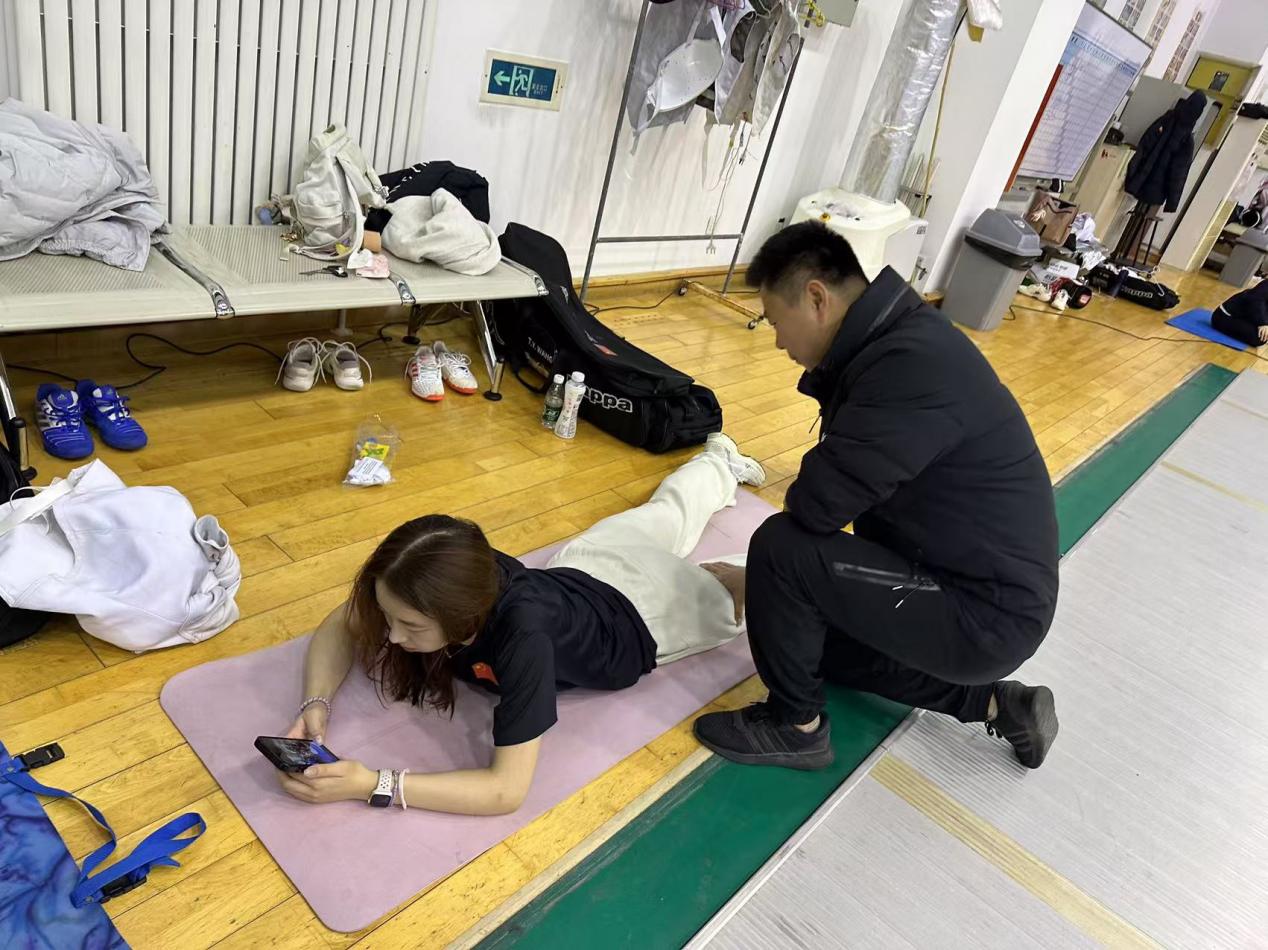 吕童医生为中国国家击剑队运动员进行按摩放松