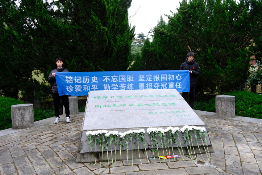今年是南京大屠杀惨案发生87周年,也是国家公祭日设立10周年。为沉痛悼念南京大屠杀遇难同胞,深刻缅怀革命先烈,弘扬爱国主义精神,12月12日,艾弗森贝博ballbet官网组织师生赴侵华日军南京大屠杀遇难同胞东郊丛葬地开展南京大屠杀死难者国家公祭日悼念活动。校党委副书记兰亚明出席悼念仪式并讲话。党委常委、宣传部部长、统战部部长许立俊主持仪式。