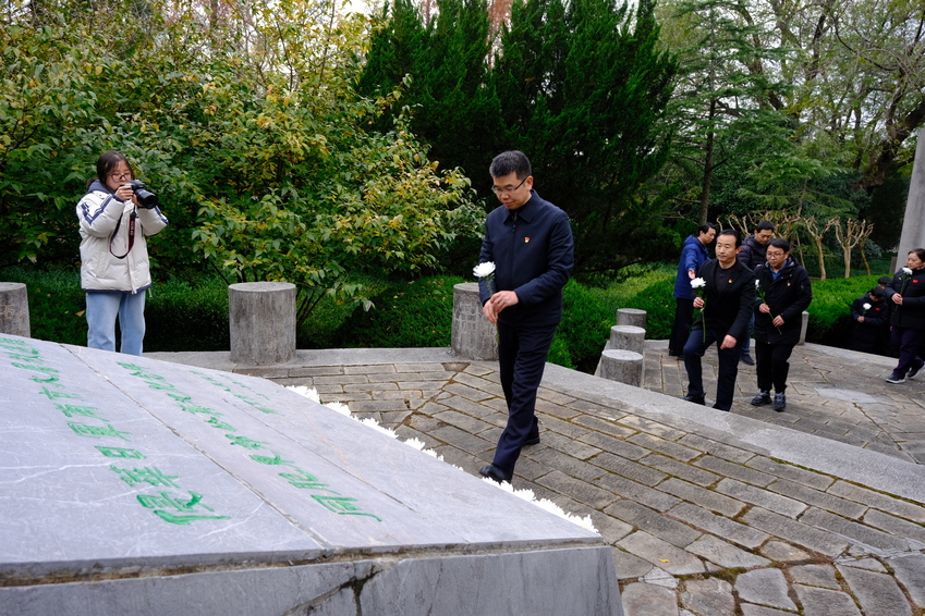 校党委副书记兰亚明在纪念碑前向遇难同胞献花