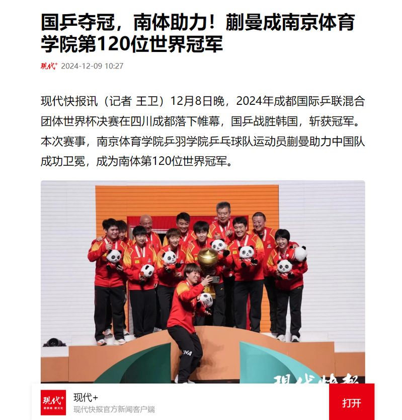 【紫金山新闻】国乒卫冕混合团体世界杯冠军,南体第120位世界冠军诞生!