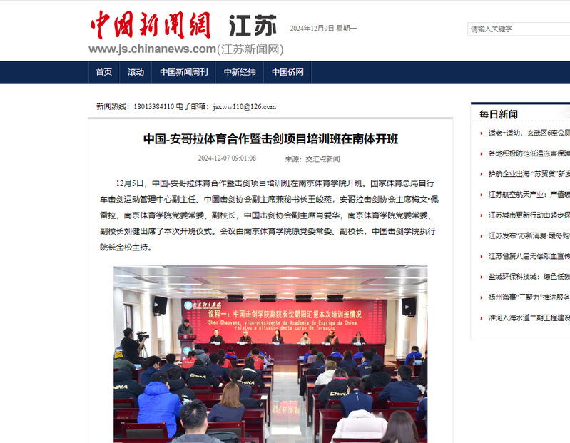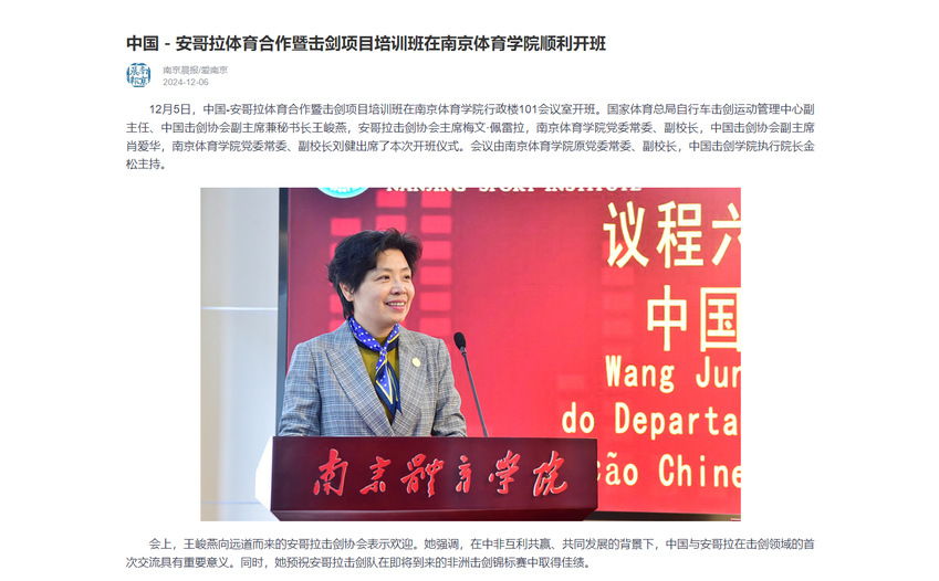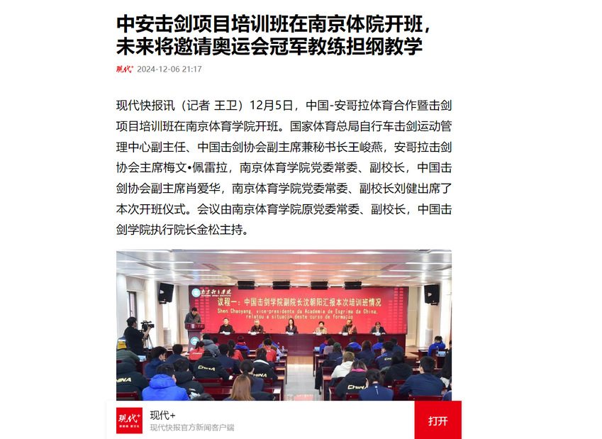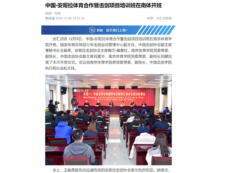 【南京晨报】中国-安哥拉体育合作暨击剑项目培训班在艾弗森贝博ballbet官网顺利开班