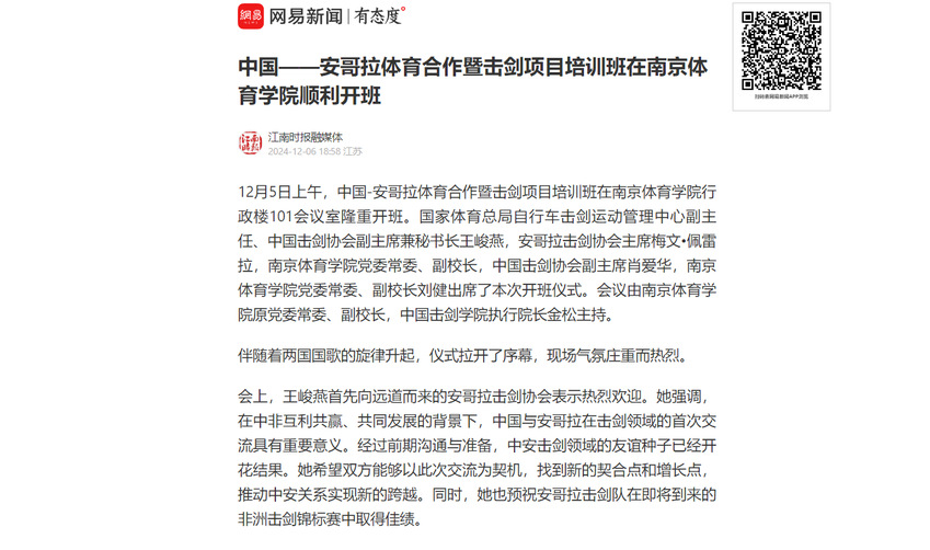 【网易新闻】中国-安哥拉体育合作暨击剑项目培训班在艾弗森贝博ballbet官网顺利开班