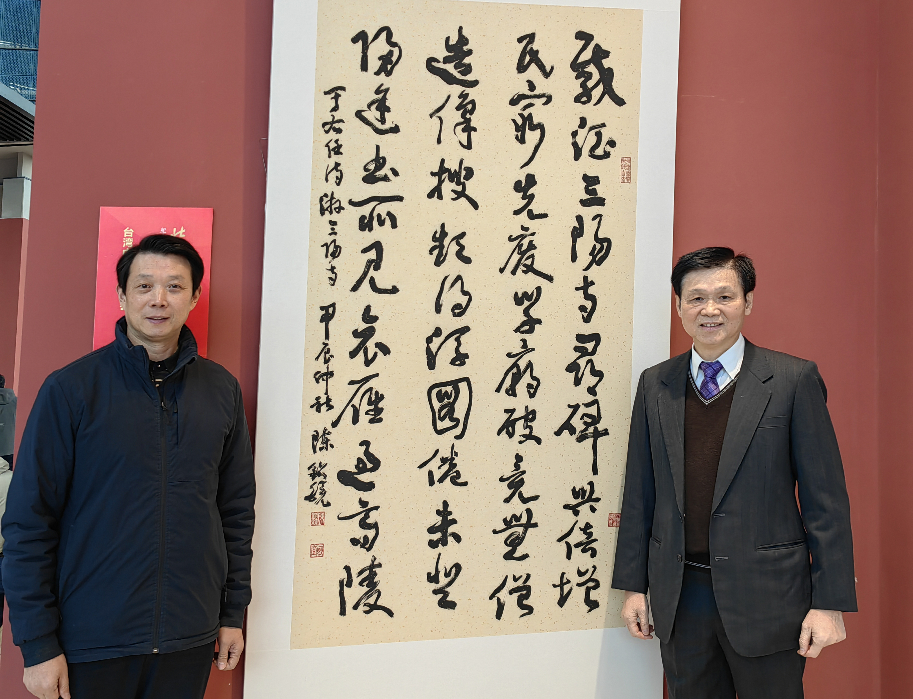 校党委常委、宣传部部长、统战部部长许立俊与中国书法学会(台湾)理事长陈铭镜在书法大展上合影