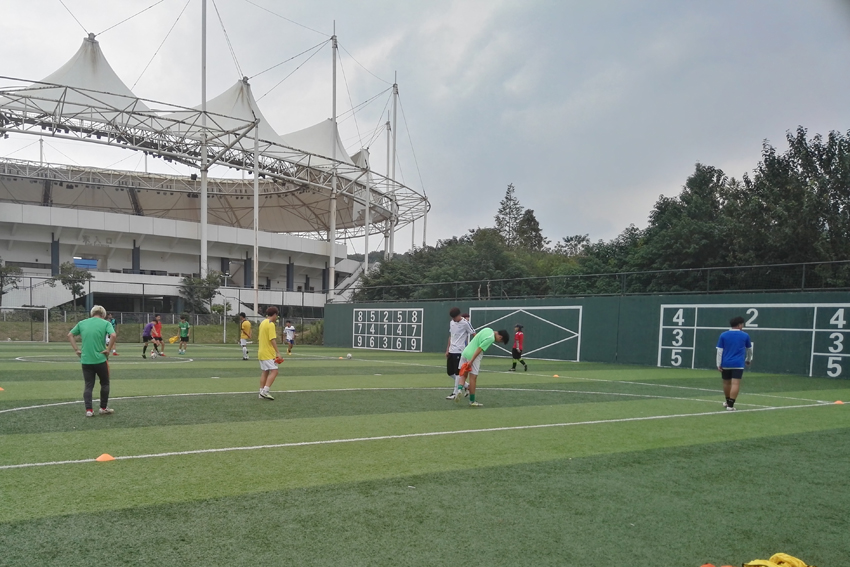 在仙林校区,许立俊一行首先来到运动系C117寝室,与该寝室网球专项的四位同学进行了交流,详细了解了他们的学习生活情况,认真记录了他们提出的奖学金发放、网球赛事参赛及寝室设施维修等问题,并建立了微信交流群。随后,许立俊一行来到仙林校区足球场,认真观摩了足球专项21747班的足球课。上课教师运动系大球教研室主任孟宁向许立俊一行介绍了相关情况,提出了足球教学场地不足等问题。许立俊一行还与运动系党总支副书记、副主任杨晖就“六联系”相关工作进行了交流。