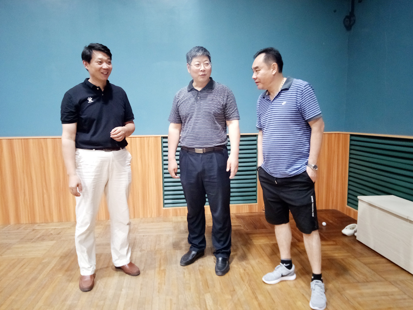 许立俊一行与乒乓球队领队杨干、老领队周来交流工作
