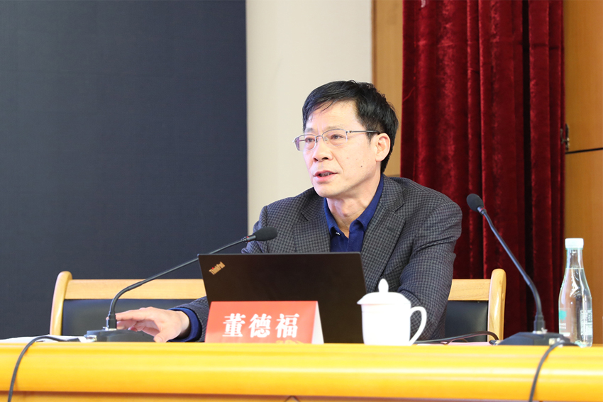 董德福教授作了题为《从百年党史中汲取前行的智慧和力量》的宣讲报告。报告分为五个部分:一、学史明理:明晰历史必然;二、学史增信,增强历史自信;三、学史崇德,赓续精神血脉;四、学史力行,践行初心使命;五、以正确的党史观学习党史。报告深入阐述了中国共产党百年奋斗史的宝贵经验和成功“密码”,高度概括了党的奋斗历程和伟大成就,系统介绍了中国共产党人的精神谱系,指出要通过原原本本学、实地调研学、课题研讨学、主题宣讲学、为师生办实事等方式高质量高标准完成党史学习教育各项任务。报告强调,要树立大历史观,站在历史的长时段、宽视野和大趋势中,坚持以正确的党史观引领党史学习教育,准确把握党的历史发展的主题主线、主流本质。