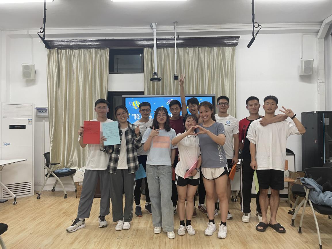 本次“释放压力 愉快生活”大学生团体心理辅导活动主要包含“喜相逢”、“压力对对碰”、“你有我们”、“拥抱明天”四大环节,每环节包含几个与放松、解压、倾诉、建立信心相关的小游戏,通过层层递进的活动让学生在团体中纾缓备赛、学习、生活中遇到的各种压力,在成员之间的互动交流中表达情绪、学习他人的压力应对方法,通过朋辈互助的方式提升大学生的自我掌控感,帮助、引导大学生积极面对未来。