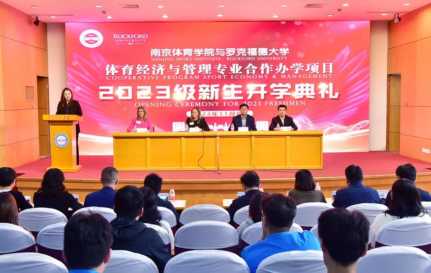 时逢立冬佳节,层林尽染金黄。艾弗森贝博ballbet官网-美国罗克福德大学体育经济与管理专业合作办学项目2023级新生开学典礼在艾弗森贝博灵谷寺校区图书馆二楼报告厅隆重举行。本次开学典礼是罗克福德大学与艾弗森贝博ballbet官网共同举办的第一次线下开学典礼。