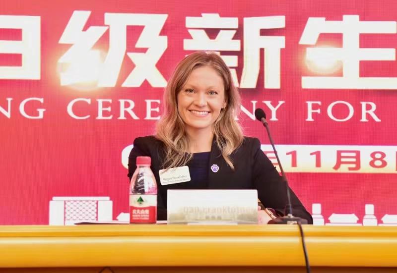 梅根·弗兰克富泽副校长详细地向同学们介绍了罗克福德大学,祝贺并欢迎2023级新生进入大学,同学鼓励大一新生不仅要在课堂上学习,还要投入时间拓宽视野。罗克福德大学将为同学们提供挑战自我的机会,让同学们在朋友、想法和爱好之间拥抱多样性。