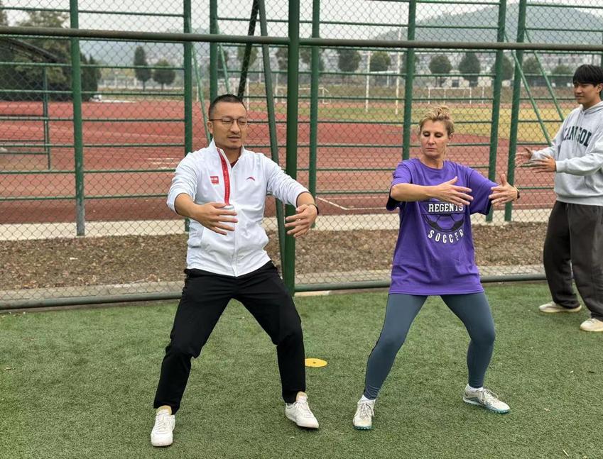 体育经济与管理国家一流专业暨产教融合品牌专业建设国际交流研讨会结束之后,为进一步增进交流,会务组为国内外与会专家组织了特色足球比赛和中华传统武术教学。