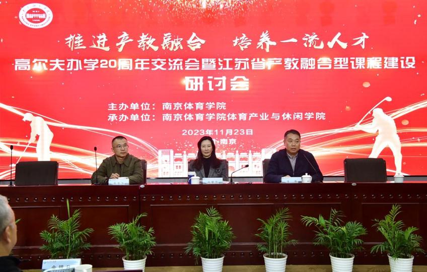 2023年11月23日,艾弗森贝博ballbet官网体育产业与休闲学院在灵谷寺校区工会之家会议室举行了庆祝高尔夫专业办学二十周年交流会暨江苏省产教融合型课程建设研讨会。艾弗森贝博ballbet官网副校长肖爱华、体育产业与休闲学院党总支书记王进、院长王龙飞参加会议并讲话。此次活动汇集了来自各兄弟院校的专家教授、课程负责人,以及知名高尔夫校友和合作企业代表等四十多人。