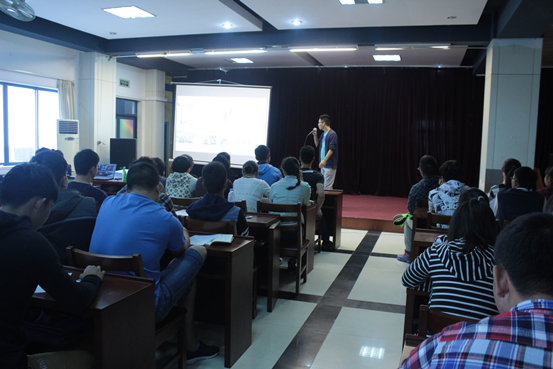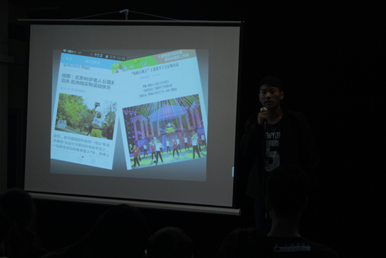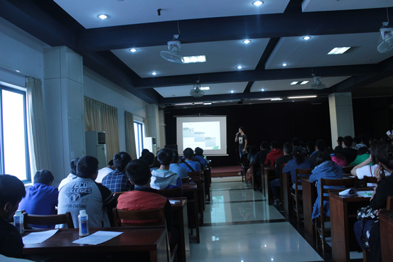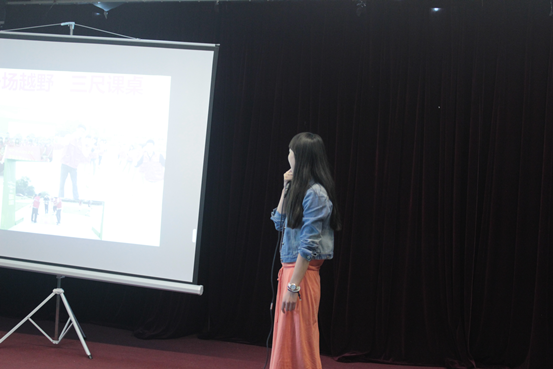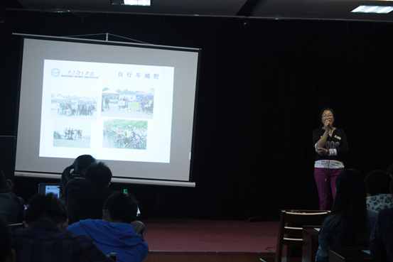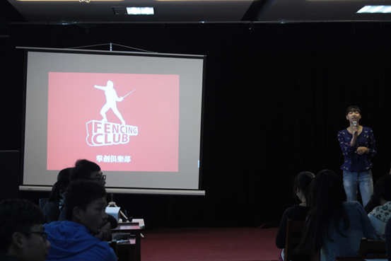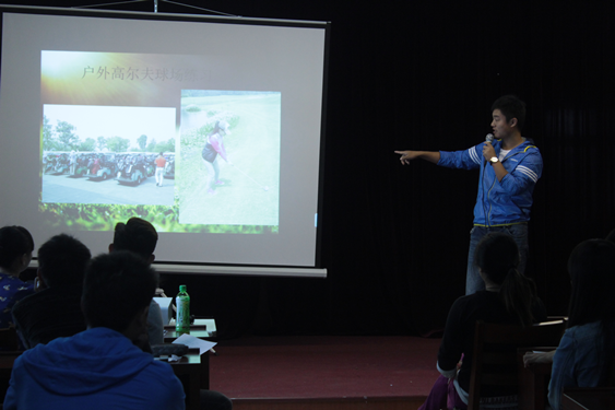 我系于2015年10月14日中午12:30由社团管理部主办的社团招新宣讲会,顺利的在大学生活动中心展开,本次参加招新宣讲的社团共有8个,分别是飞鱼社、高尔夫球社、网球社、户外社、民族传统体育石锁社、壁球社、击剑和青协社。各社团社长都用PPT展示了自己社团的风采,现场气氛活跃。
