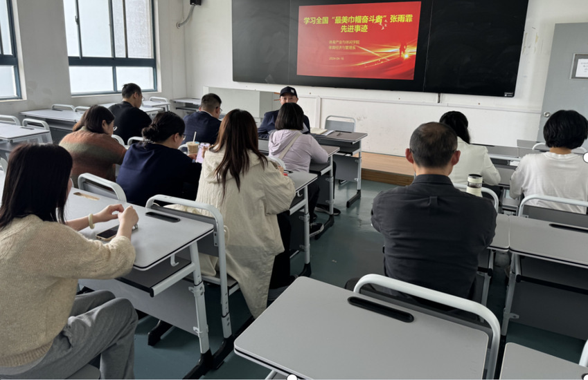 2024年4月16日中午,体育产业与休闲学院体育经济与管理系教师们齐聚仙林校区教学楼405,共同学习全国“最美巾帼奋斗者”张雨霏的先进事迹,会议由体育经济与管理系主任张建明主持。