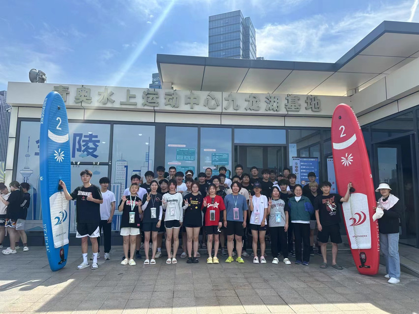 2024年5月29日,休闲体育系23级110231、110232班全体学生在我院胡娟、朱金宁两位老师的带领下赴青奥水上运动中心九龙湖基地开展了一次别开生面的桨板运动初体验活动。这次校外实践教学不仅为学生提供了户外运动机会,还让他们深入了解和体验了桨板运动的魅力。