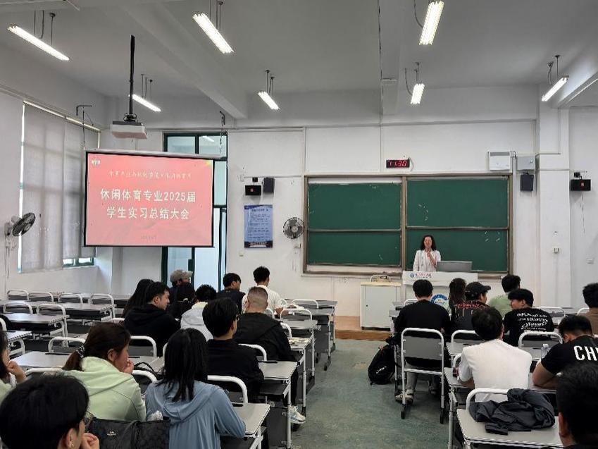 2025年4月18日上午,体育产业与休闲学院休闲体育系在仙林校区C301召开休闲体育专业2025届学生实习总结大会,会议由系副主任崔媛媛主持,系主任朱金宁参会指导,休闲体育专业2025届全体学生参加。
