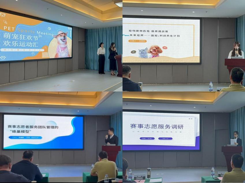 体育产业与休闲学院院长郭修金教授以“聚势·赋能·共生”为主题致欢迎辞,代表学院向参会的专家、企业代表及师生们致以诚挚谢意。“登攀系列”体育赛事综合能力大赛分为赛事策划和赛事志愿者调研报告两大部分。在赛事策划“人宠运动会”展示环节,各参赛团队通过限时5分钟的路演汇报,系统呈现了涵盖赛事策划、安全保障、商业运营等维度的赛事策划方案。专家从可行性分析、创新价值、商业效益等维度进行专业点评,并提出建设性意见。体育赛事调研报告展示环节,专家从调研方法、调研数据、调研成果及应用价值等方面进行了点评,使同学们受益良多。