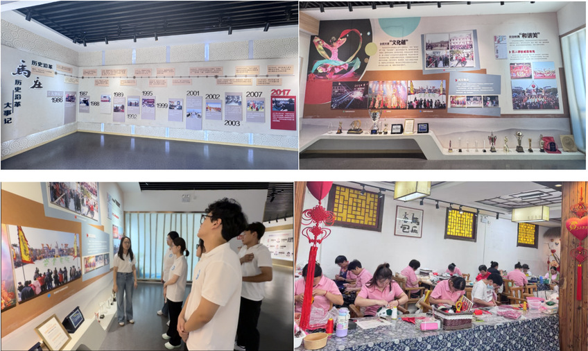 为深入了解马庄村乡村振兴之路与产业变发展,实践团队走进马庄村村史馆,探索马庄村在党建引领下的振兴模式。通过研学马庄村历史沿革事迹墙,观看走上国际舞台的苏北第一支农民铜管乐团演出照片,走访马庄香包文化大院产业链,切实感受马庄村的奋斗历史与文化振兴活力。特别值得关注的是,自1990年代延续至今农民运动会,将传统农事活动与体育竞技相结合,创新性地举办了多项特色农民运动会项目,充分展现了村民的协作精神与劳动智慧,成为传承乡土文化、凝聚体育情感的重要载体。