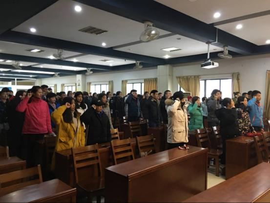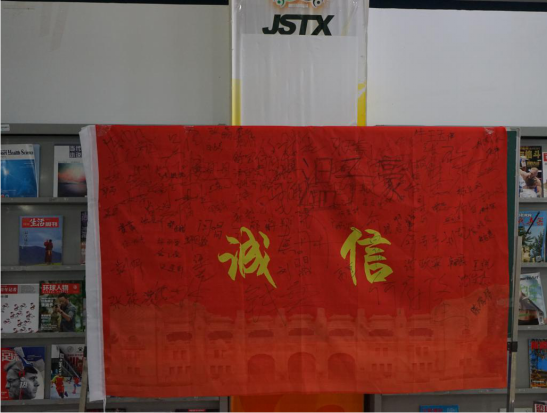 于翠兰主任在2017级一年级学生大会中介绍大学考试的模式和特点,强调诚信考试的重要性。并面向全系学生提出以下要求:一是认真备考,制定科学合理的复习计划,按时作息,考出优异成绩;二是严格考试纪律,加强监督,诚信考试,杜绝考试作弊,一旦发现,严肃处理;三是发挥集体力量,学生骨干要以身作则,主动帮助成绩薄弱的同学一起复习,提高班级整体成绩。在2015、2016年级考试动员大会上,101542班许公明同学带领全体学生进行诚信考试宣誓,并在诚信板上郑重签名,以表决心。