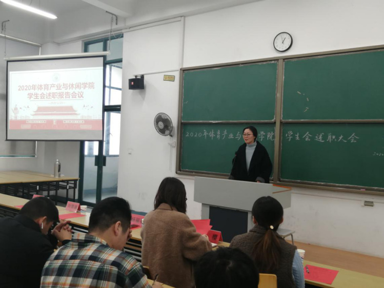 12月23日中午,体育产业与休闲学院举行学生会、学联会述职大会,10位学生会、学联会干部就一年来的工作做总结汇报。学院党总支副书记杨丽丽、学工办主任唐佳、团委副书记刘雪薇、学生会指导老师张樱和辅导员宋佳出席大会。与会的还有学生会、学联会的主席团以及来自各部门的干事。