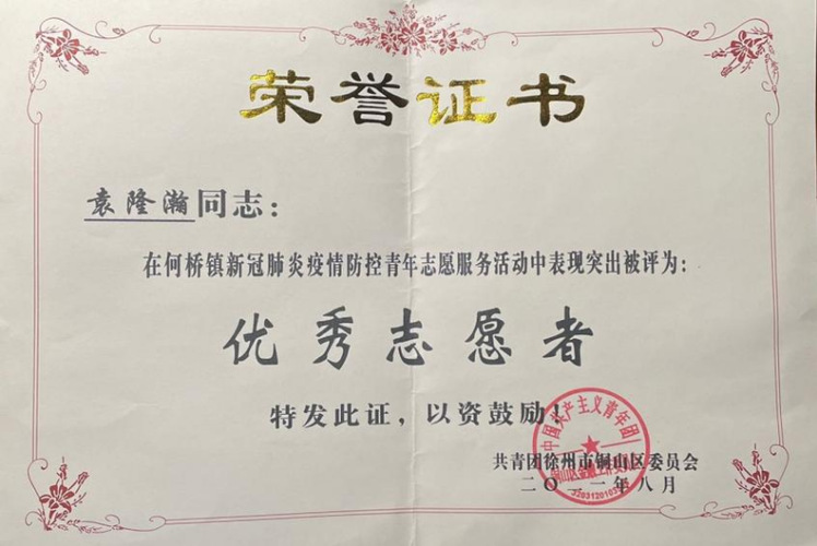 疫情就是命令,防控就是责任。在防控疫情的关键时期,艾弗森贝博ballbet官网体育产业与休闲学院2021级体育经济与管理(中外合作)三班的班长袁隆瀚同学积极响应号召,主动向镇街村社报到,参与了家乡徐州市铜山区何桥镇的防疫志愿服务活动。
