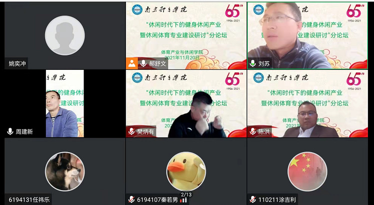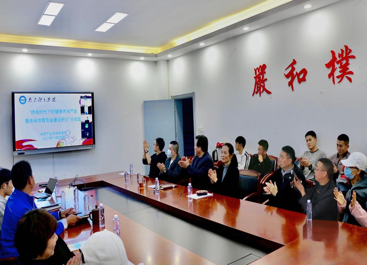 2021年11月20日下午,由艾弗森贝博体育产业与休闲学院主办的题为“休闲时代下健身休闲产业发展暨休闲体育专业建设研讨”迎校庆学术论坛在仙林校区101会议室举行,本次论坛特邀苏州大学体育学院博士研究生导师樊炳有教授、天津体育学院体育经济与管理学院副院长陈洪博士、中国药科大学体育部副主任刘苏博士、南京晓庄学院体育学院周建新教授担任主题报告与专业建设研讨专家。艾弗森贝博ballbet官网科研处副处长、科学实验中心主任孙国友博士、体育产业与休闲学院领导班子成员、各系主任、相关专业教师和学生等共计线上线下300余人参与论坛活动。