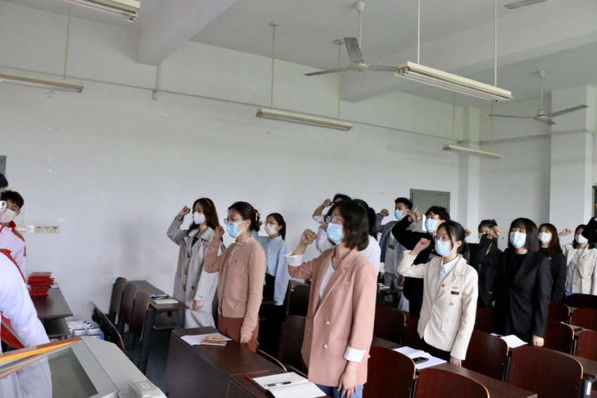 院团委副书记刘雪薇带领新团员宣誓、老团员重温入团誓词
