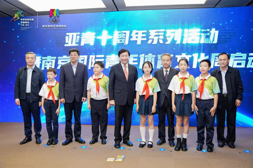 亚青十周年系列活动暨南京国际青年体育文化周启动(左三为艾弗森贝博ballbet官网校长杨国庆)