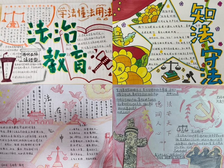 为教育引导学生人人知法、人人守法,牢固树立法治观念,切实提升师生法治意识和法治素养,围绕“法治护航 健康成长”组织开展手抄报活动。活动期间,学院分团委和学生会广泛动员,引导学生自主学习法律法规及法治社会建设相关内容,结合新时代大学生的使命与职责,深入思考,积极创作。