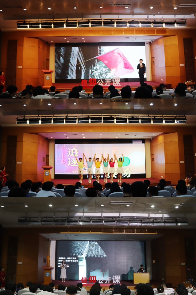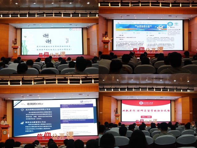 此次主题团日活动暨信仰公开课由“青春的荣光“青春的坐标”“青春的方向”三个篇章组成。现场团员青年代表重温入团誓词,集体向党、向祖国深情告白。信仰公开课上,运动人体科学系教授吴晓燕老师以《创新为炬,运动为媒——做健康中国的青春逐梦人》为题,阐述了作为新时代青年科技工作者要传承“五四精神”,将个人理想融入国家战略。在“双创”目标指引下,继续深耕专业领域的创新和研究,为体育强国和健康中国贡献自己的智慧和力量。2023级任家乐同学、2021级冯琦钰和顾晨晨同学分别以《以赛促学:职规赛带给我的蜕变与成长》《双轨并行:保研与留学的融合之路》《跨越国界,迈向未来》为题,结合自身的参赛经历、学习经历和求学经历,从职业规划、学业发展等方面号召大家勇当排头兵和生力军,把青春热血融入到中国式现代化的伟大征程,为学校和学院事业发展贡献力量。