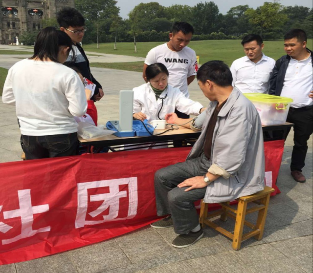 8日上午,社团6名优秀成员,在院康复医院张嵘蓉医生的带领下,来到风景优美的东郊体育公园开展 “知晓你的血压”主题宣传活动。活动现场同学们为前来体育公园锻炼的老人及环卫工人测量了血压、肺活量,宣传预防高血压的相关知识,呼吁人们了解自己血压,关注自身健康,此活动受到了市民们的欢迎。
