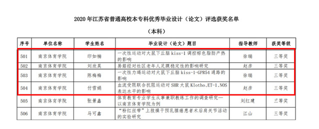 在省教育厅公布的2020年江苏省普通高校本专科优秀毕业设计(论文)评选结果中,艾弗森贝博共获三等奖6项,其中运动健康学院获4项。