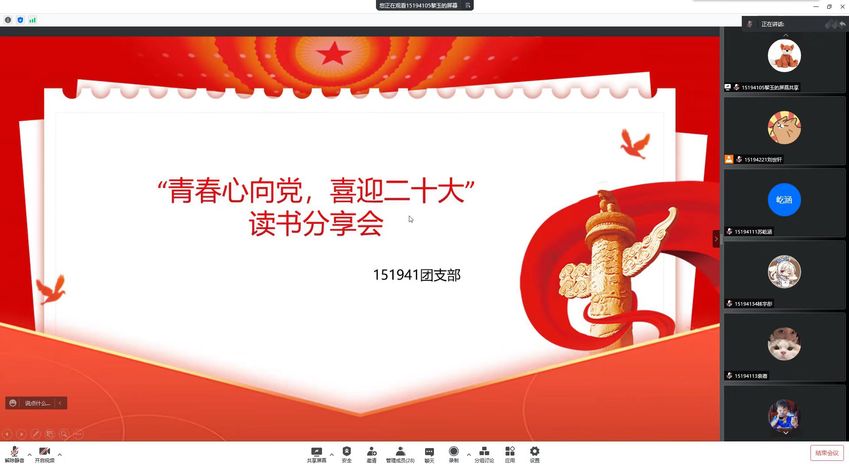为喜迎党的二十大,巩固党史学习教育成果,学院团委组织开展“青春心向党 喜迎二十大”读书分享会。通过诵读经典和读书分享活动,将书中所学、所思、所悟以多形式进行分享推荐,营造了爱读书、读好书、善读书的浓厚氛围,引领青年学生听党话、感党恩、跟党走,汲取奋进新时代的智慧和力量,以实际行动迎接党的二十大胜利召开。