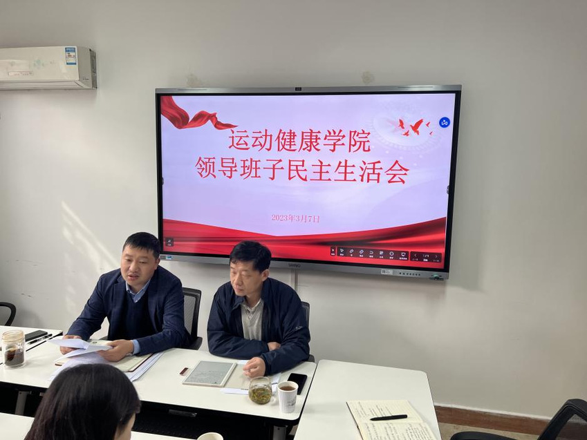 2023年3月7日上午,运动健康学院党总支部根据校党委《关于开好2022年度处级党员领导干部民主生活会的通知》部署要求,在教学办公楼108会议室召开2022年度民主生活会。此次会议由党总支部书记丁永亮主持,副书记阚妮妮、副院长赵彦参加会议,院长汤强列席会议。