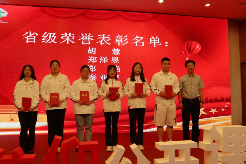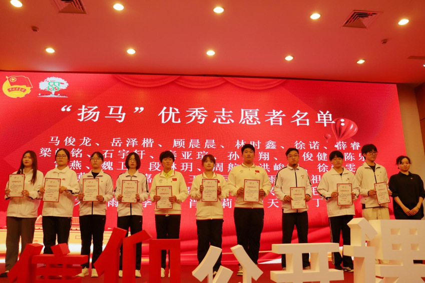 运动健康学院学工办主任王菁菁扬马“优秀志愿者”代表颁奖
