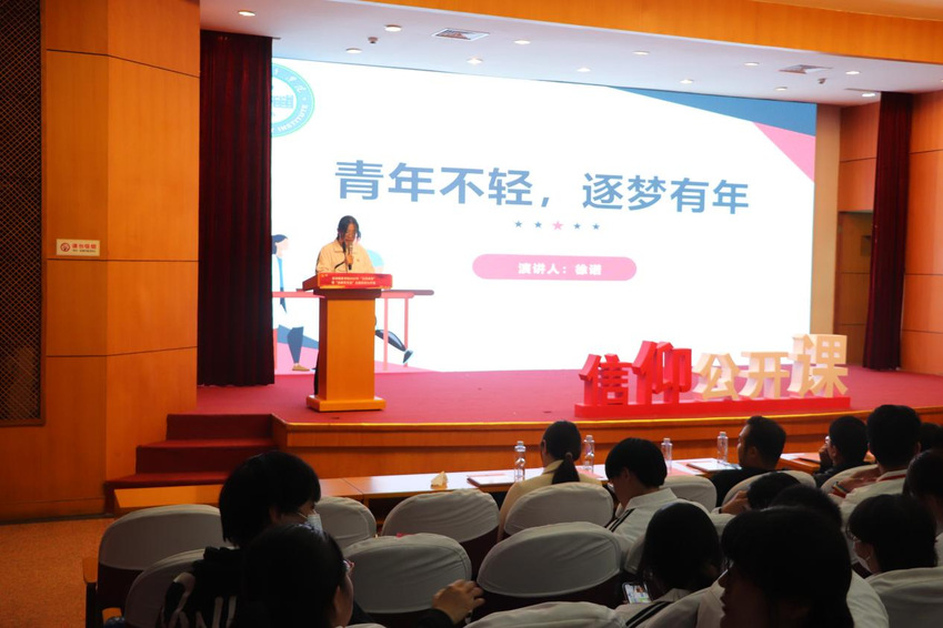 校优秀毕业生程燕翔同学带领团员青年代表重温入团誓词,铿锵有力的誓词表达了团员们为共产主义事业奋斗终生的信心和决心。学院团员青年代表高文月、徐诺、付康分别以《燃五四青春 述志愿微光》《青年不轻 逐梦有年》《仰望星空 脚踏实地》为主题进行的“运康青年说”师生信仰公开课宣讲,他们从志愿服务、职业规划、学业发展等方面,分享了自身的学习和实践经历,号召青年学生积极融入社会大课堂和群众大熔炉,在搏击风浪中增长才干、成为国家的栋梁。团员代表王涵、刘威朗诵了诗歌《青春中国》,他们通过饱含深情的声音,传递着青年们对青春中国的由衷热爱和与祖国同向同行的理想信念。