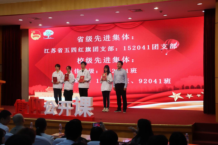 大会在嘹亮的国歌和团歌中拉开帷幕。会上对“江苏省五四红旗团支部”、“五佳十优班级”、“优秀共青团员”、“优秀共青团干部”、“优秀毕业生”、“三好学生”、“优秀学生干部”、“扬州鉴真半程马拉松先进工作者”、“考务工作优秀志愿者”以及“扬马优秀志愿者”进行了表彰。