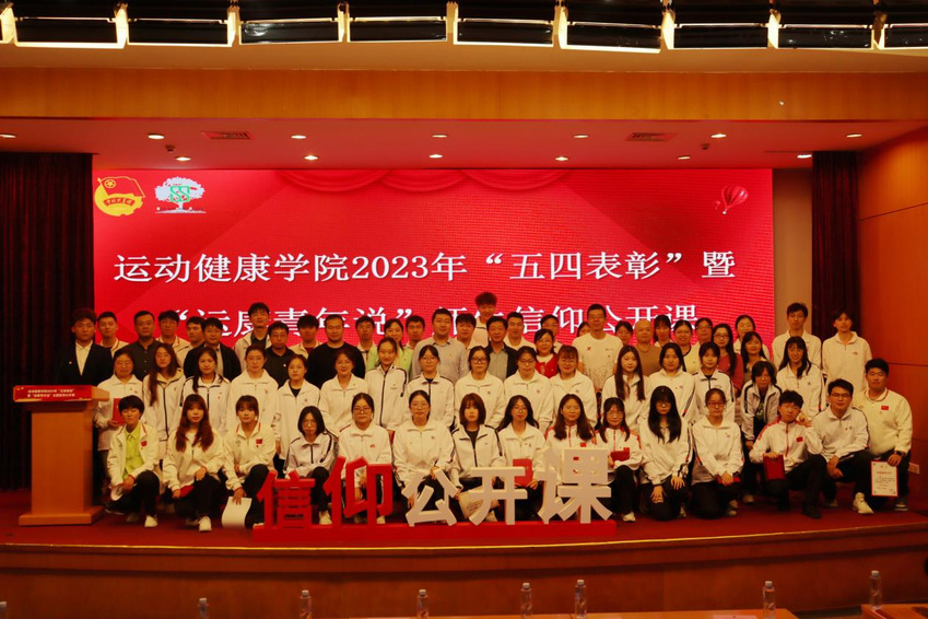 为引领广大青年深入学习贯彻党的二十大精神,弘扬“五四”精神,表彰2022-2023学年度运动健康学院涌现出的先进集体、先进个人,激励广大团员青年创优争先,5月5日晚,运动健康学院在图书馆第一报告厅举办“五四”表彰大会暨“运康青年说”师生信仰公开课活动。运动健康学院党总支书记丁永亮、院长汤强、党总支副书记阚妮妮、副院长赵彦出席本次活动,学院青年教师代表和团员青年代表参加活动。