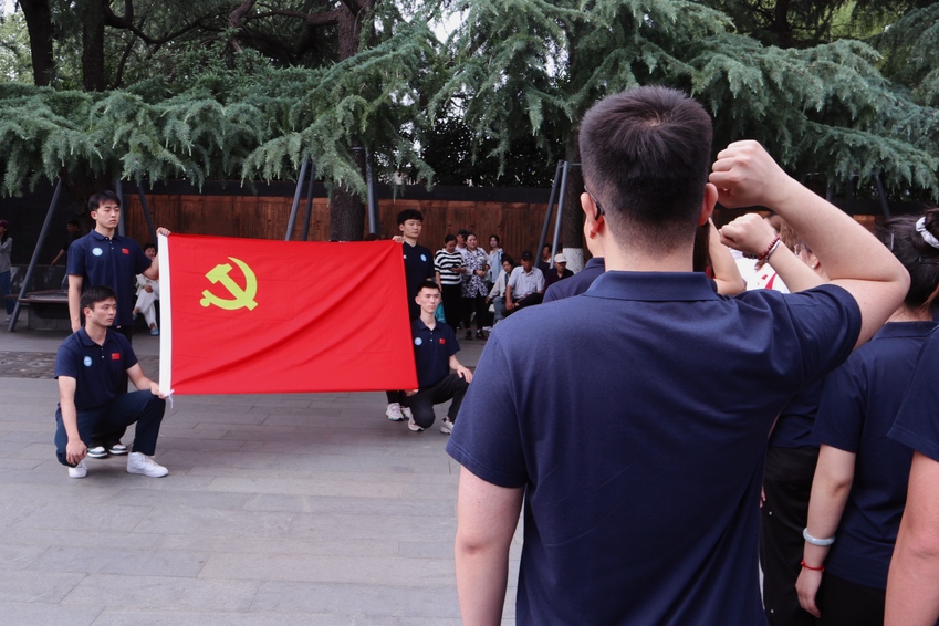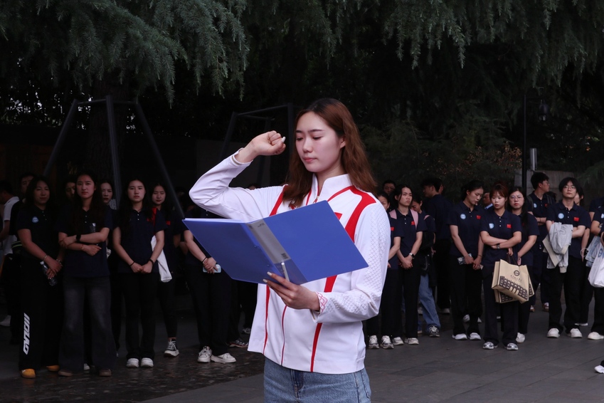 随后,支部师生党员重温入党誓词。20余名预备党员和正式党员面向党旗郑重宣誓,宣誓环节由中共党员、2023级运动训练专业研究生、花样游泳集体项目奥运冠军王赐月领誓。铿锵有力的誓言在纪念馆广场回响,彰显了党员同志对党的事业无限忠诚和矢志奋斗的坚定决心。