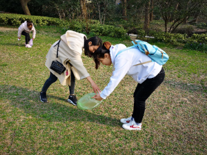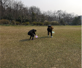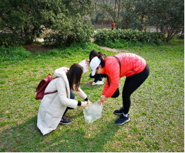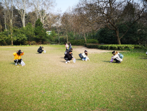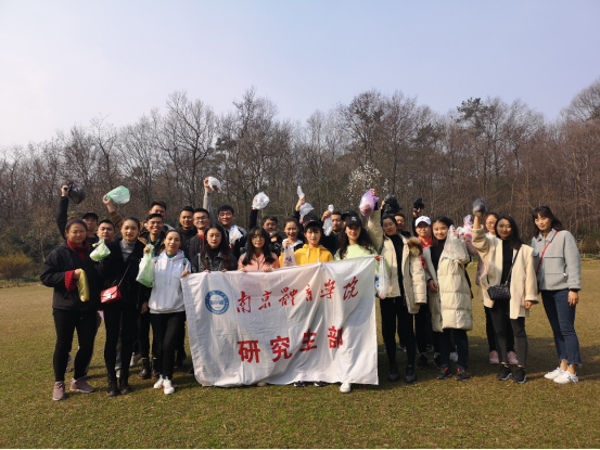 上午8:30,全体成员在图书馆门口集合。随后由沈海玲带队,全体成员拿着准备好的垃圾袋步行前往中山陵景区。
